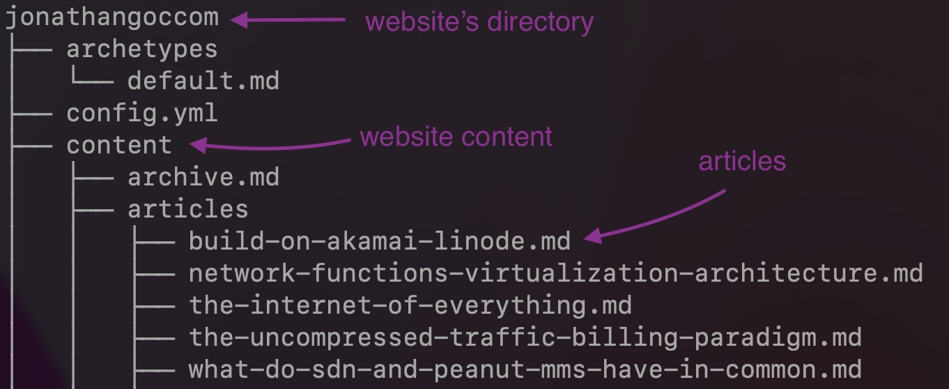 When creating a new website using Hugo, this will generate a new directory with the right folders in it.